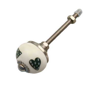 Verleihen Sie Ihrem Interieur mit diesem Möbelknopf aus Porzellan mit grünen Herzen einen charmanten Touch. Das gepunktete Herzmotiv auf weißem Hintergrund sorgt für einen verspielten und fröhlichen Look, perfekt für Kinderzimmer, Vintage-Möbel oder kreative Projekte. Der Knopf aus robustem Porzellan wird inklusive Befestigungsschraube geliefert, sodass Sie sofort loslegen können.
