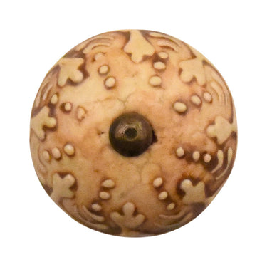 Porzellan Möbelknopf 40 mm mit Pflanzenmotiv – Sandsteinoptik
