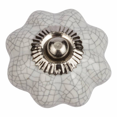 Porzellan Schrankknopf weiß Craquelé – Blütenform