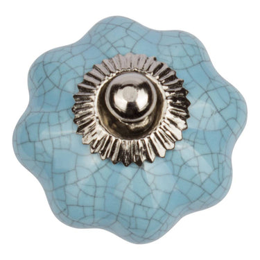 Ein kleines Detail mit großer Wirkung: Mit diesem türkisen Craquelé-Blütenknauf erhält jedes Möbelstück einen individuellen, stilvollen Charakter – langlebig & dekorativ zugleich.