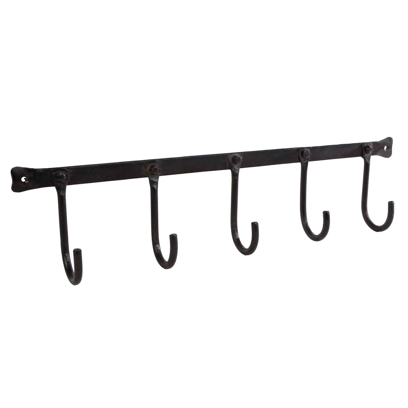 Wandgarderobe „Teun“ – 5 Haken, Alt-Schwarz Metall (50×6×11 cm)