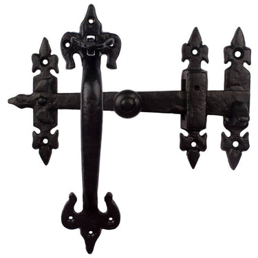 Verleihen Sie Ihrem Tor oder Ihrer Tür ein klassisches, rustikales Detail: Dieses Klinkenset im Fleur-de-Lis-Design aus massivem Gusseisen besticht durch sein kunstvolles Schmiedewerk-Aussehen. Die schwarze Pulverbeschichtung sorgt für eine dauerhafte, zeitlose Oberfläche, die perfekt zu Cottage-, Farmhouse- und Landhausprojekten passt.