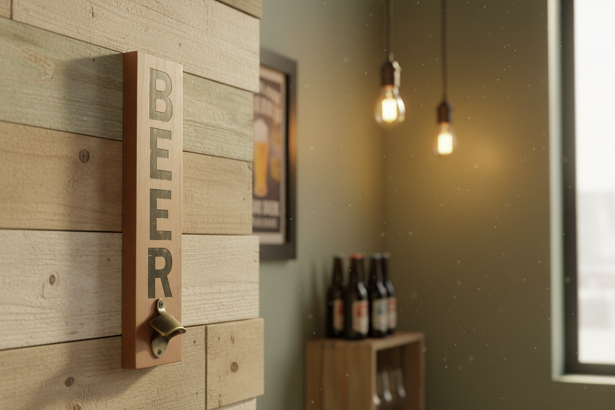 Verwandeln Sie jede Wand in eine Bierwand mit diesem coolen Wandflaschenöffner ! Die robuste Holzplatte, die klare „BEER“-Schrift in Gold und der Öffner aus antikem Messing machen ihn nicht nur zu einem praktischen Werkzeug, sondern auch zu einem echten Hingucker . Hängen Sie ihn in Ihre Küche, an die Bar oder einfach in Ihr Männerzimmer – denn mal ehrlich: Wer möchte schon nach einem Flaschenöffner suchen, wenn das Bier kalt ist?