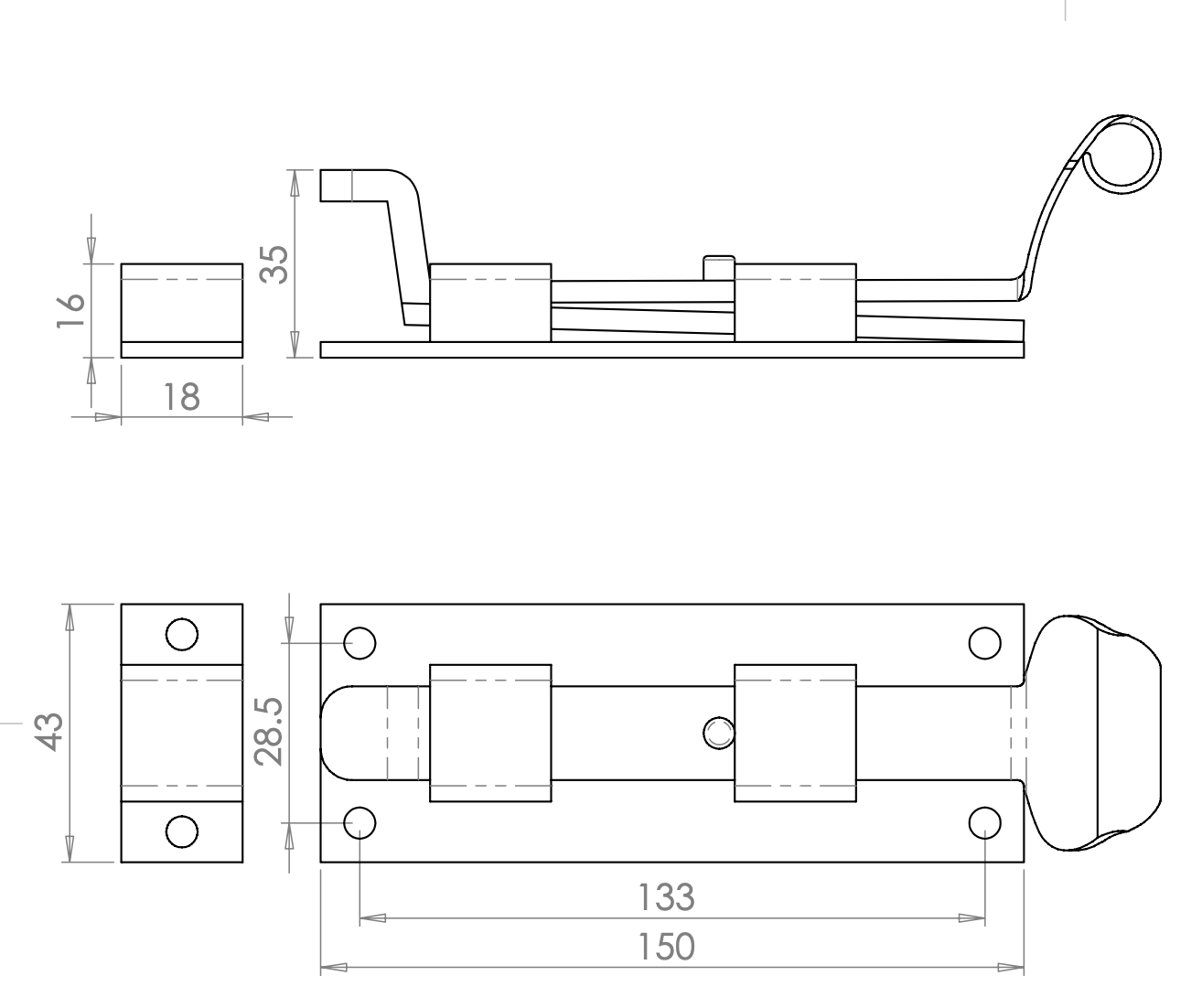 Schmiedeeisen Türriegel Fischschwanz 90 mm und 150 mm – Zinn-Finish