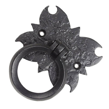 Gusseiserner Ringgriff mit Zierplatte – schwarz 84×70 mm (Ring Ø54)