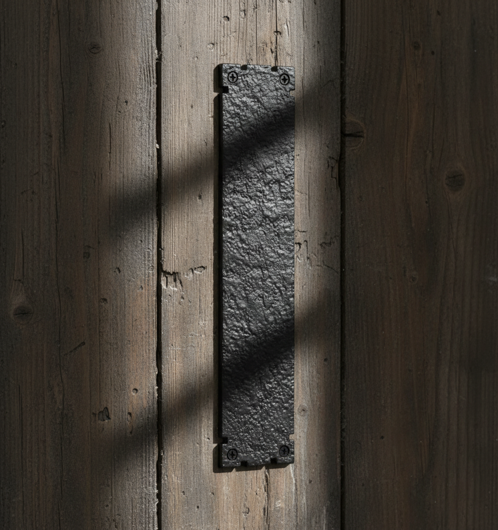 Gefertigt aus 5 mm starkem Metall und mit einer widerstandsfähigen schwarzen Pulverbeschichtung versehen, ist diese Platte nicht nur funktional, sondern auch ein stilvolles Detail an jeder Tür. Die solide, leicht rustikale Optik passt perfekt zu klassischen, ländlichen und industriellen Einrichtungen.