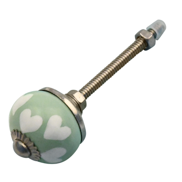 Grüner Möbelknopf mit Herzdekor aus Porzellan