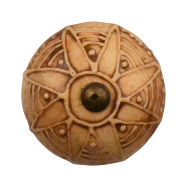 Porzellan Möbelknopf 40 mm mit floralem Relief – Sandsteinbraun