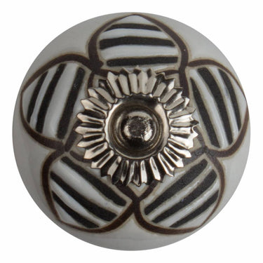Verleihen Sie Ihren Möbeln eine stilvolle, klassische Note mit diesem Porzellanknauf. Der weiße Knauf ist mit einer schwarzen Blume im kontrastreichen Linienmuster versehen und mit einem silberfarbenen Beschlag veredelt. Ideal, um Schranktüren, Schubladen oder Kommoden sowohl in modernen als auch in ländlichen Einrichtungenaufzuwerten.