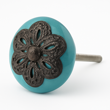 Die robuste Keramik sorgt für langlebige Qualität, während die elegante Metallblume auf der Vorderseite einen Hauch von Nostalgie verleiht. Für ein harmonisches Erscheinungsbild lässt sich dieser Knauf wunderbar mit anderen Modellen aus unserem Sortiment kombinieren.