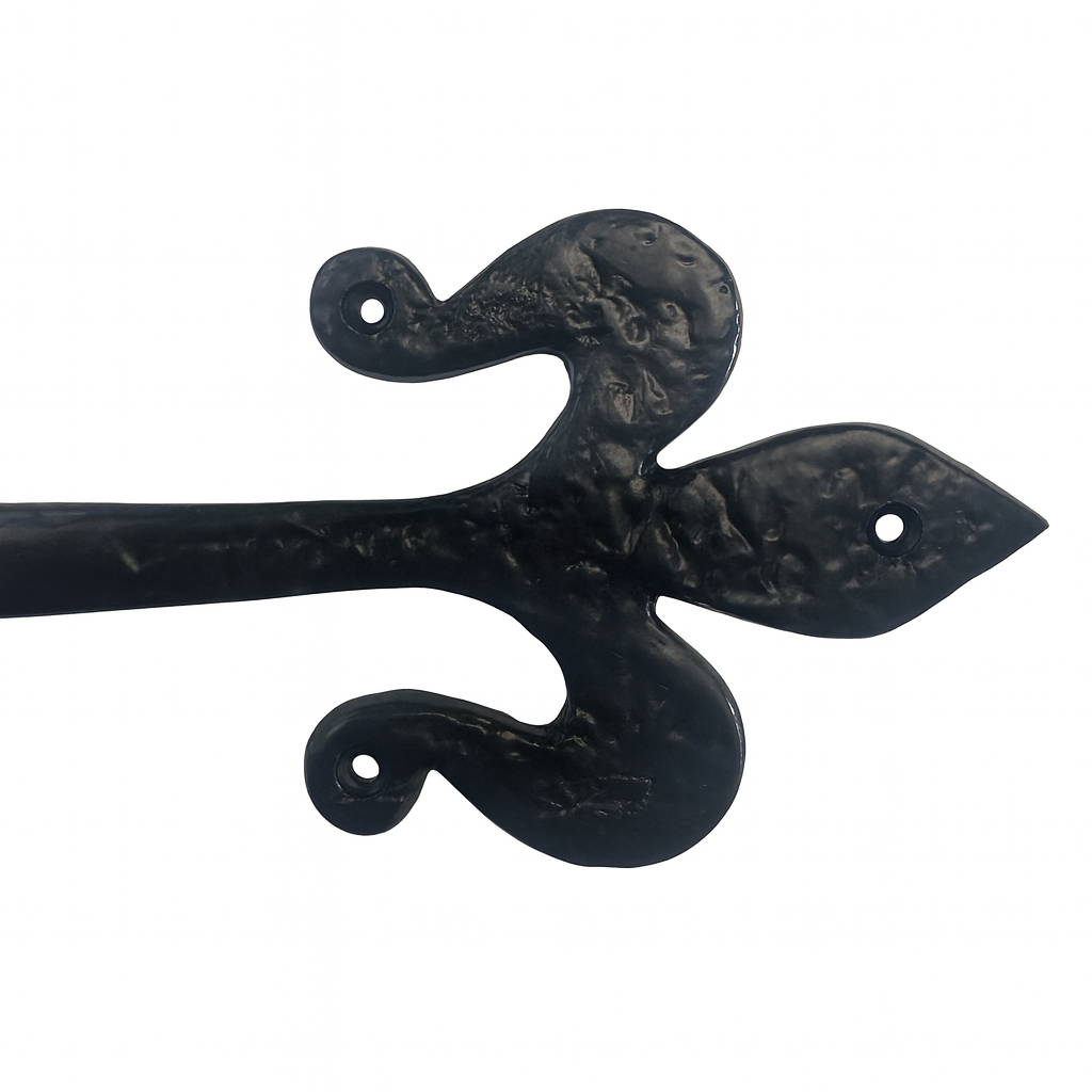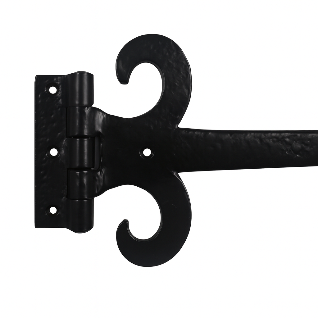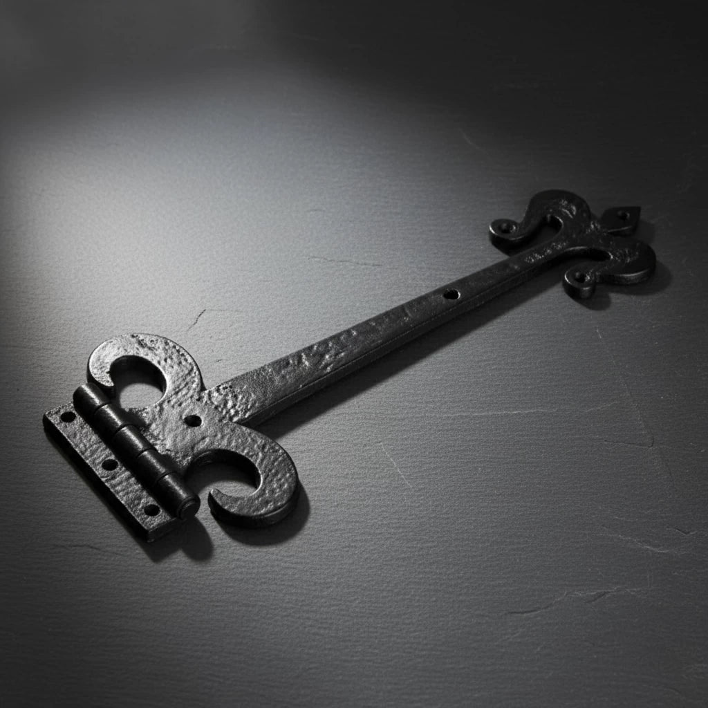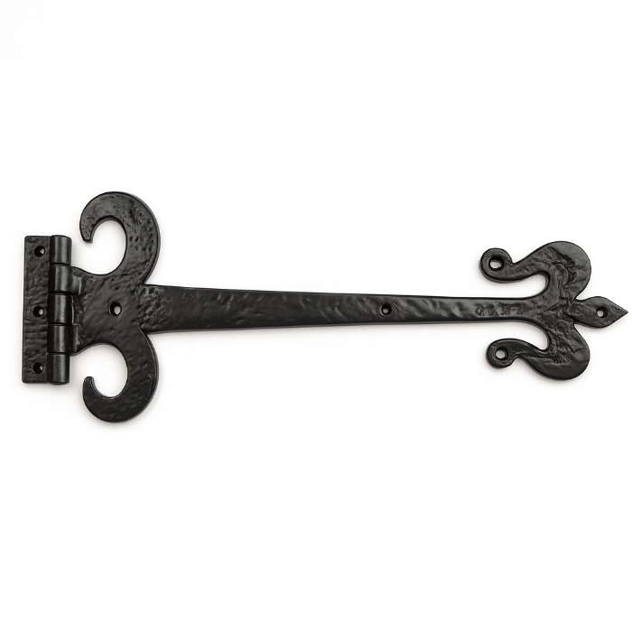 Dieses schwere gusseiserne Scharnier verleiht Türen, Toren, Schränken und Fensterläden einen authentischen, klassisch-dekorativen Look. Die schwarze Oberfläche und das zierliche Endstück machen es ideal für Landhaus- und Industrie-Interieurs – und auch als rustikales Detail an Gartentor oder Schuppen (bei Außenmontage empfiehlt sich zusätzlicher Witterungsschutz).