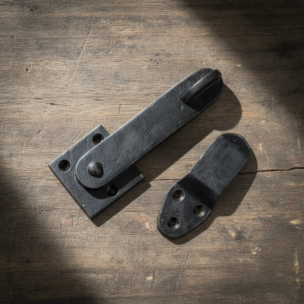 Gusseiserner Privacy-Riegel – Schwarz / Pewter / Rost (146 × 82 mm)