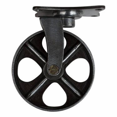 Ein Rad mit Charakter und Funktionalität: Die Pewter-Oberfläche, die 4-Speichen-Optik und die solide Montageplatte verleihen Ihrem Projekt sofort echten Industriecharme.