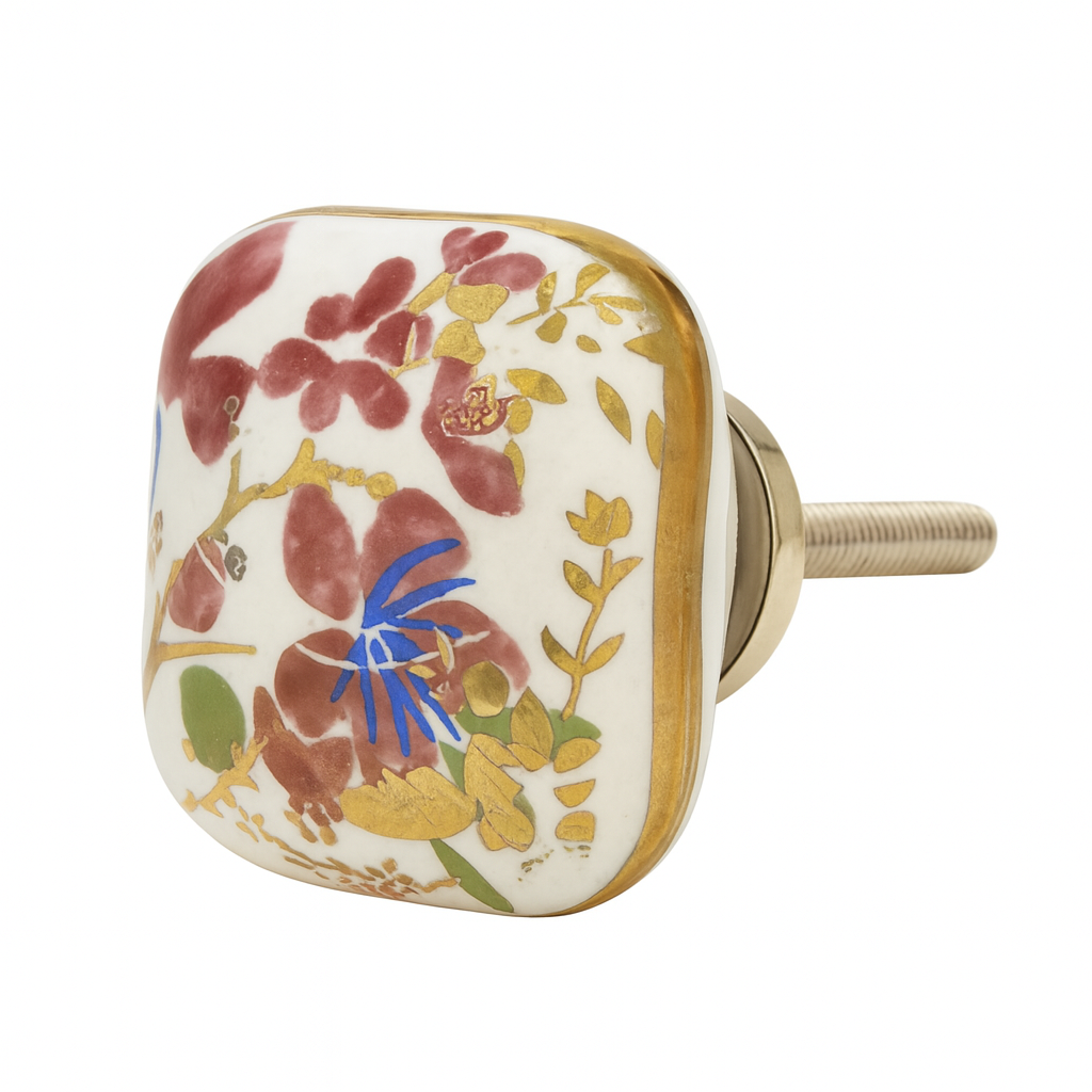 Quadratischer Möbelknopf aus Keramik mit Blumendekor