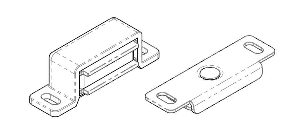 Magnetischer Möbelschließer mit Langlöchern zur Feinjustierung