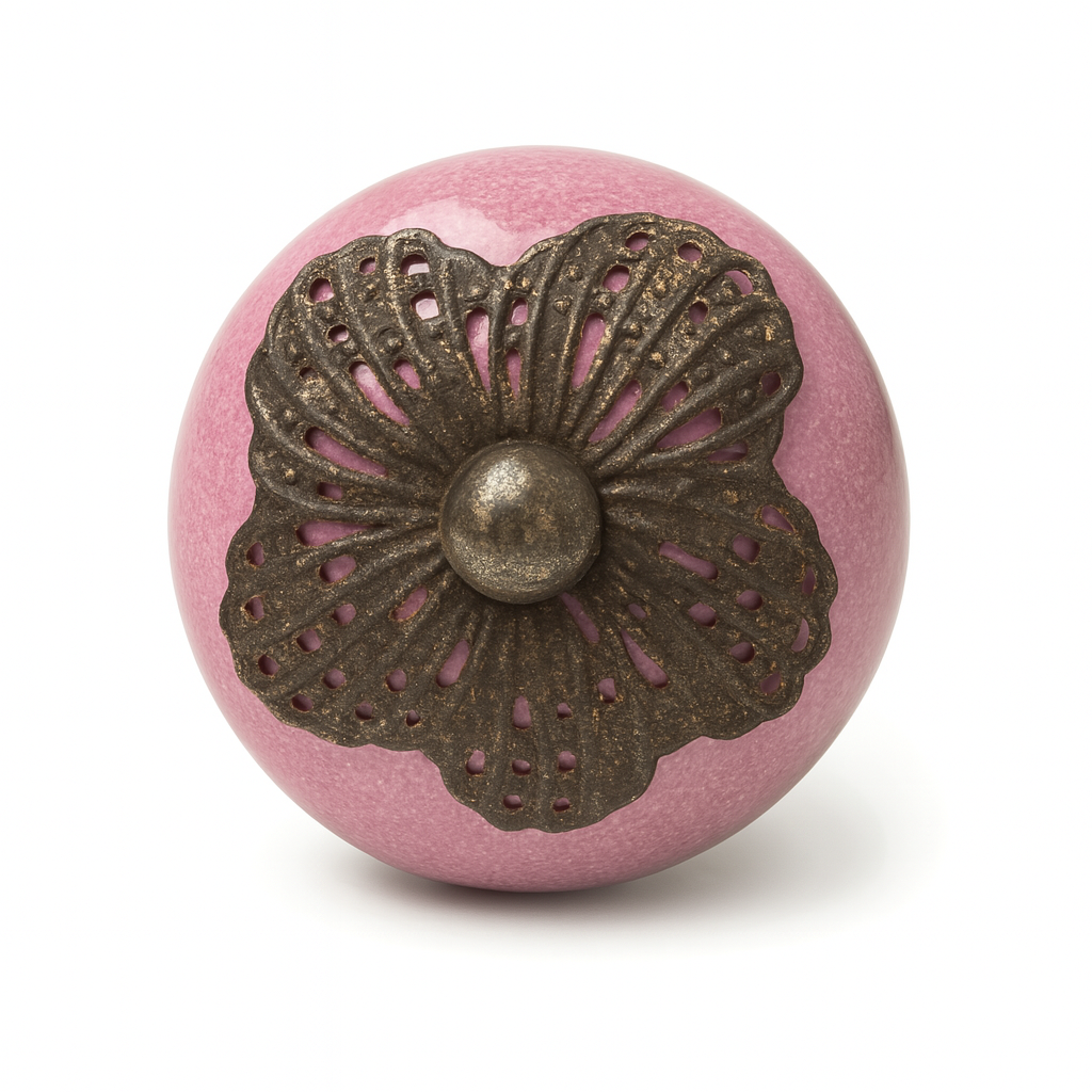 Bezaubernder Möbelknopf aus Porzellan mit rosa Keramik und bronzener Blume