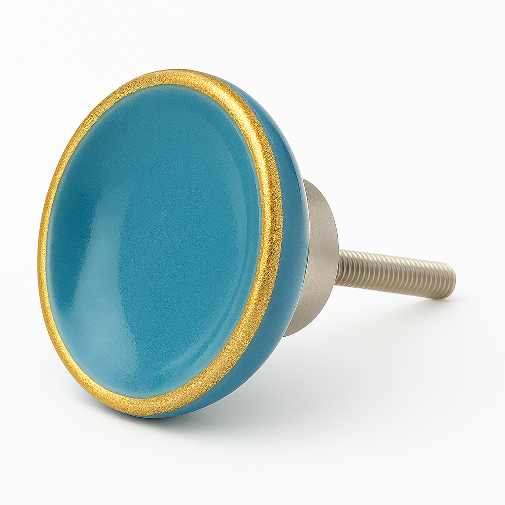 Edler Möbelknopf aus Porzellan mit Goldrand in fünf sanften Farbtönen