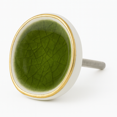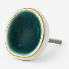 Verleihen Sie Ihrem Interieur mit diesem organisch geformten Porzellanknopf einen raffinierten und natürlichen Look. Dieser Möbelknopf aus Porzellan ist handgefertigt und mit einer glänzenden Craquelé-Glasur und einem dezenten goldfarbenen Rand versehen, was ihm einen eleganten und handwerklichen Charakter verleiht. Dank der leicht asymmetrischen Form hat jeder Knopf ein einzigartiges Aussehen – perfekt für Liebhaber natürlicher Formen und Handwerkskunst.