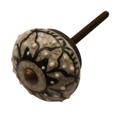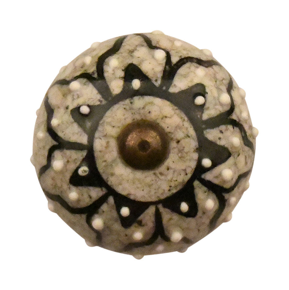 Graubeige-schwarzer Porzellan Schrankknopf – passend zu einem Boho- oder skandinavischen Interieur