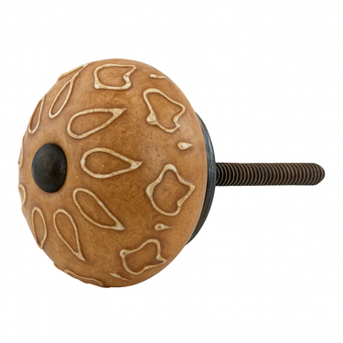 Keramik-Schrankknopf in Sandstein-Optik mit bronzefarbener Rosette