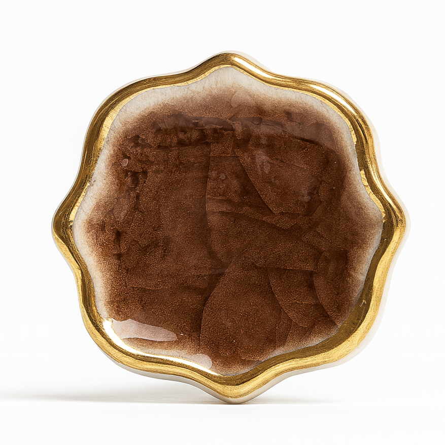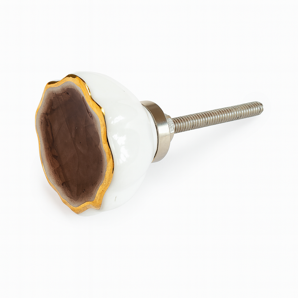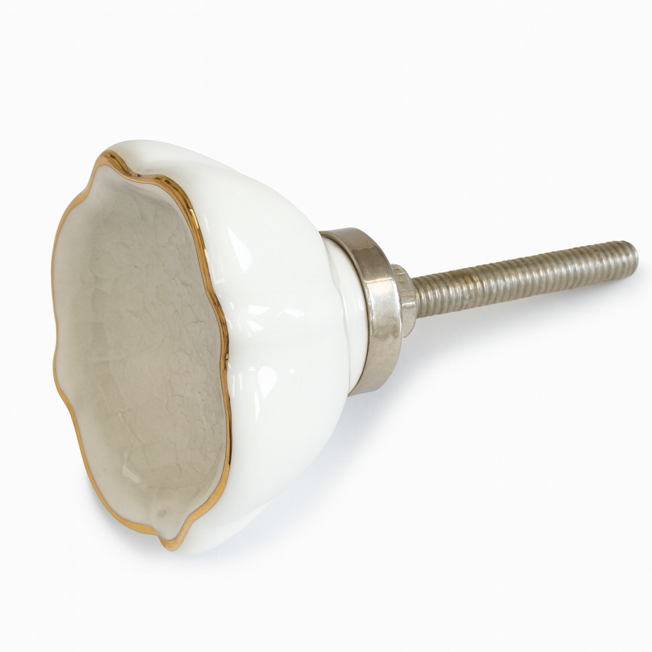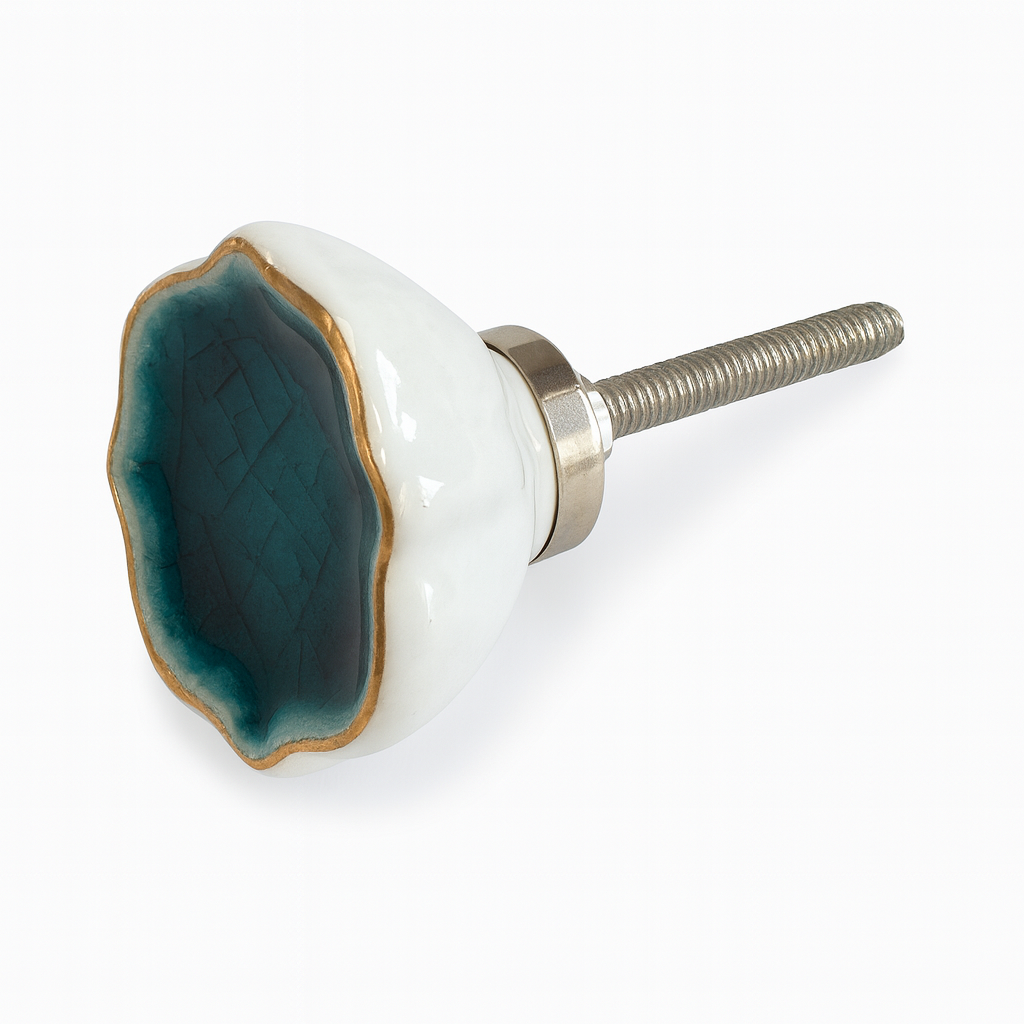 Verpassen Sie Kommode oder Schrank in Minuten ein stilvolles Upgrade – mit diesem porzellanenen Möbelknopf in organischer Form. Die tiefe Craquelé-Glasur und die goldene Umrandung sorgen für ein elegantes Finish, das sich wunderbar mit Holz, schwarzem Metall oder hellen Lacken kombinieren lässt.