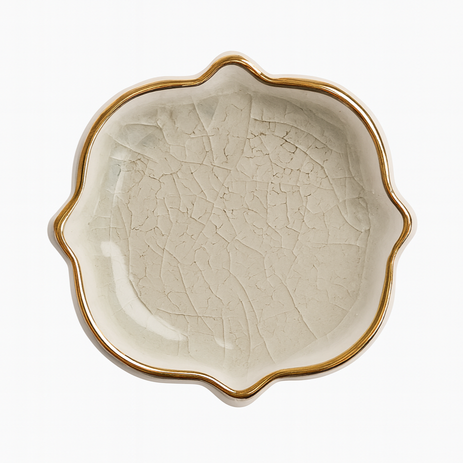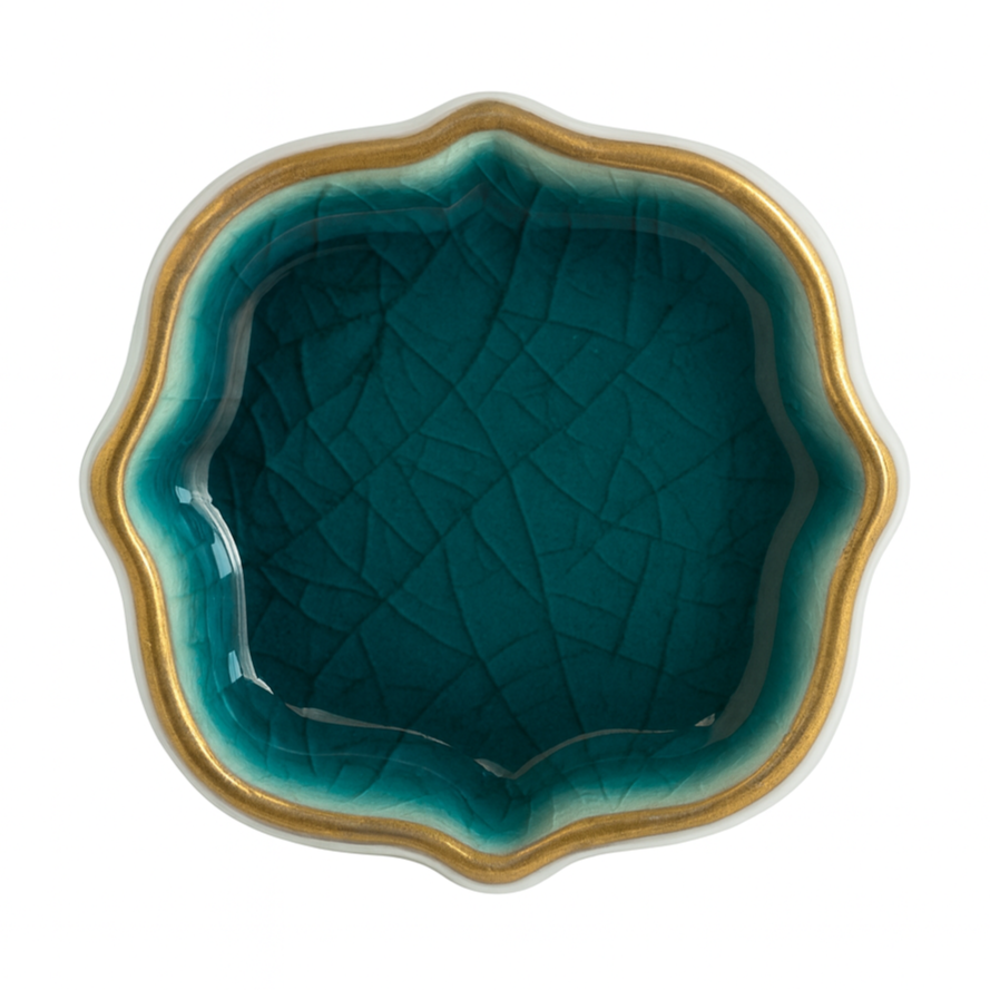 Oberfläche: Craquelé-Glasur mit goldfarbener Umrandung
