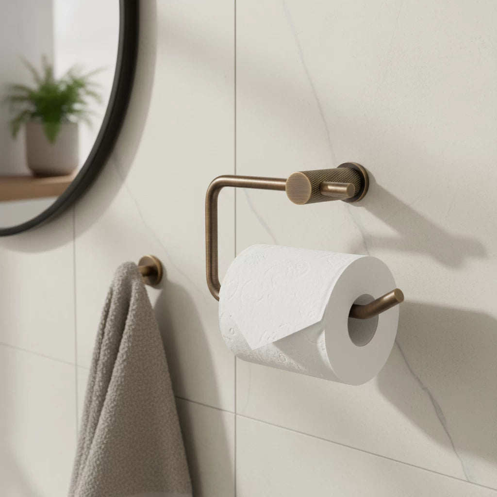Dieser Toilettenpapierhalter aus hochwertigem Metall ist in verschiedenen luxuriösen Ausführungen erhältlich und passt perfekt zu verschiedenen Einrichtungsstilen – von robust industriell bis raffiniert modern. Die robuste Konstruktion und das elegante Finish machen dieses Modell zu einer langlebigen und ästhetischen Ergänzung für Ihren Sanitärbereich.