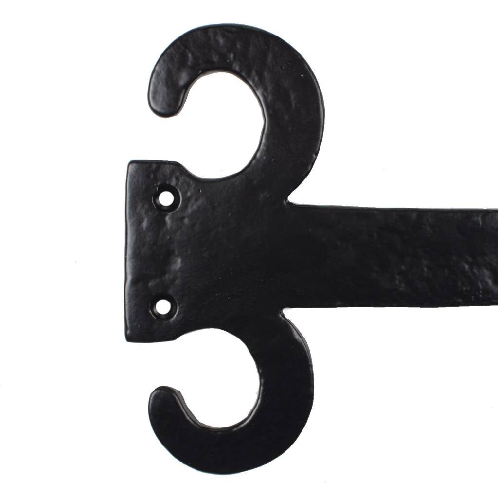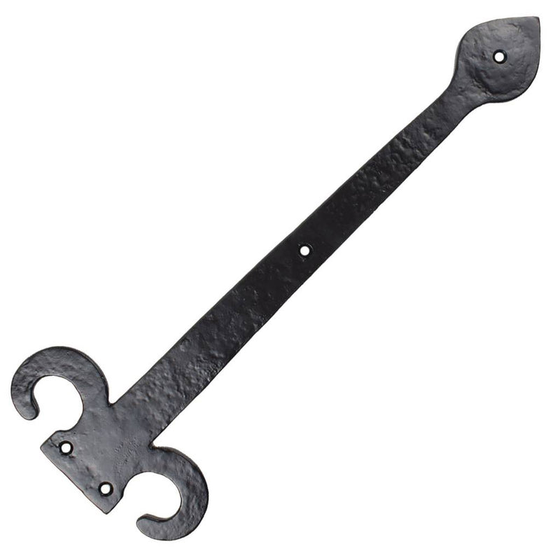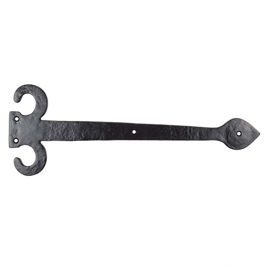 Mit diesem gusseisernen Zierscharnier verleihen Sie jeder Tür in wenigen Minuten eine rustikale Landhaus-Ausstrahlung. Es handelt sich um ein Scheinband (dekorativ, nicht tragend), das sich einfach auf stumpfen wie auch Falztüren anschrauben lässt. Die schlanke Speerform mit geschwungenen Krull-Details und die schwarze Pulverbeschichtung passen perfekt zu klassischem, ländlichem und Cottage-Türbeschlag.